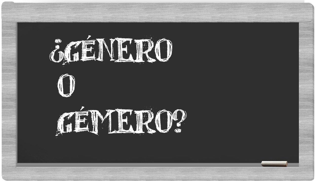 En la particular circunstancia que involucra las palabras género y gémero, es imperativo que no vaciles, puesto que únicamente género se encuentra debidamente redactada. Por otro lado, gémero no figura en el repertorio del Diccionario de la Real Academia Española.