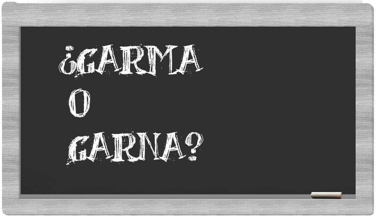 La mezcla entre garma y garna surge principalmente por la similitud en su forma de pronunciarse. En una gran parte de los acentos del español, su fonética es tan parecida que puede inducir a error en cuanto a su escritura. No obstante, la forma correcta de cada término está determinada por su raíz etimológica y por las normativas particulares de la escritura en español.