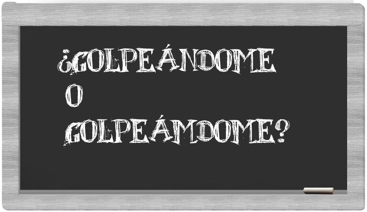 Cuando te encuentres considerando las expresiones golpeándome y golpeámdome, no hay lugar para la incertidumbre, puesto que únicamente golpeándome se encuentra correctamente formulada en el idioma, mientras que golpeámdome no figura en el Diccionario de la Real Academia Española.