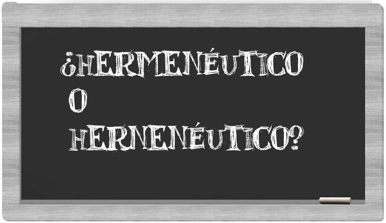 Cuando se presenta la comparación entre los términos hermenéutico y hernenéutico, no deberías vacilar ni un instante, puesto que únicamente hermenéutico se encuentra adecuadamente escrita. Por otra parte, hernenéutico no figura en el Diccionario de la Real Academia Española.