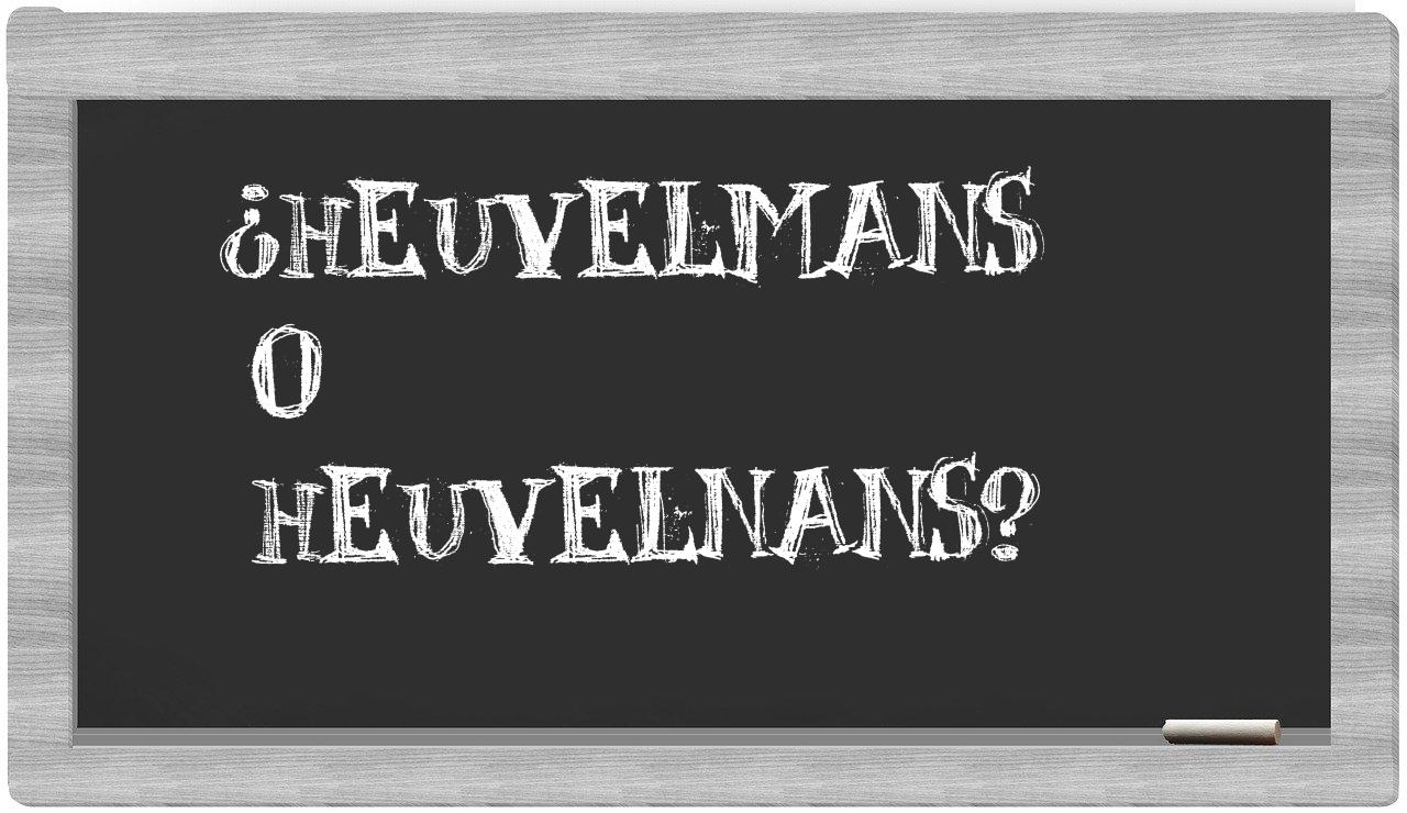 Cuando se trata de la relación entre heuvelmans y heuvelnans, no hay espacio para la indecisión, puesto que únicamente heuvelmans es la que se encuentra debidamente registrada y validada. Por otro lado, heuvelnans no forma parte del léxico aprobado por la Real Academia Española.