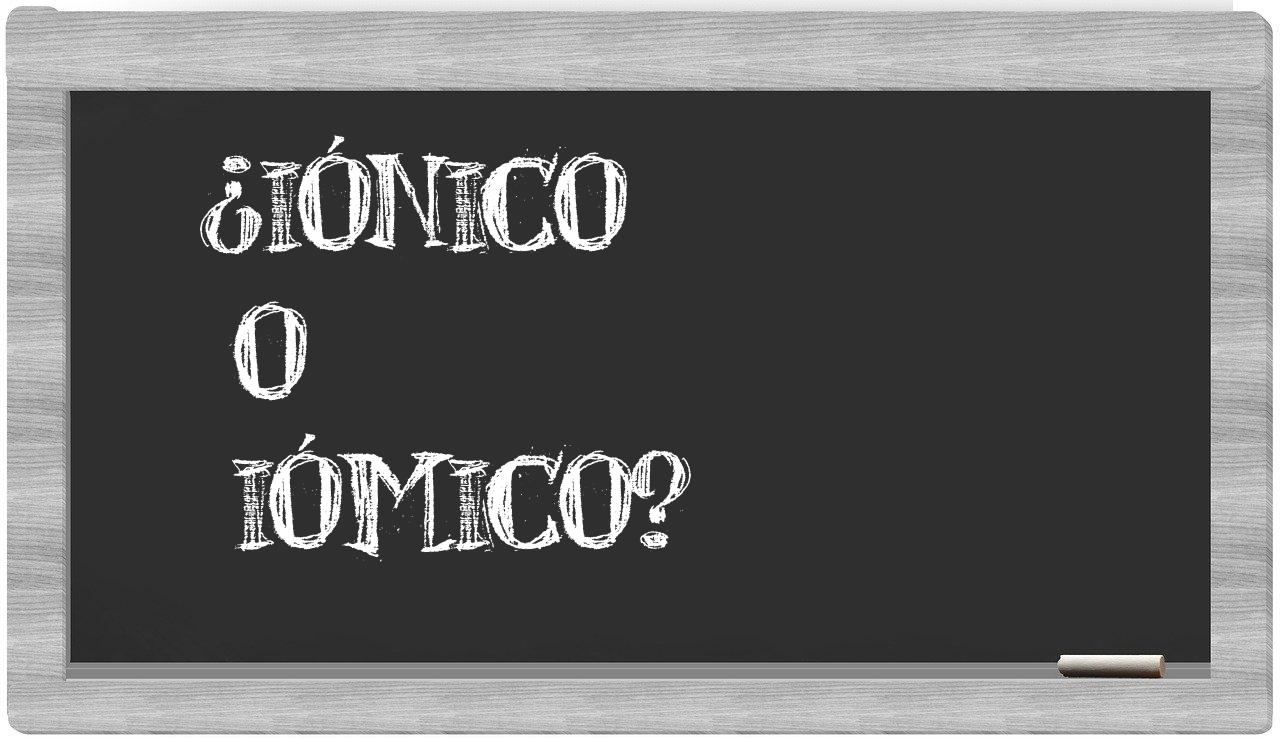En la situación particular que involucra a iónico y iómico, no deberías titubear, puesto que únicamente iónico se encuentra correctamente formulada. Por otro lado, iómico carece de reconocimiento en el Diccionario de la Real Academia Española.