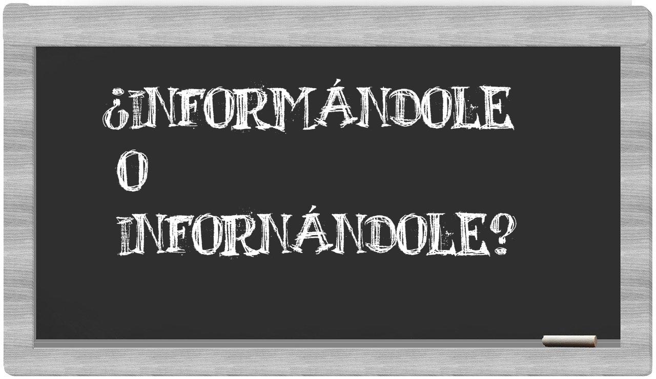 Cuando se trata del vínculo entre informándole y infornándole, es imprescindible no titubear, pues únicamente informándole se encuentra legitimado en el léxico del Diccionario de la Real Academia Española, mientras que infornándole carece de reconocimiento en su autoridad lingüística.