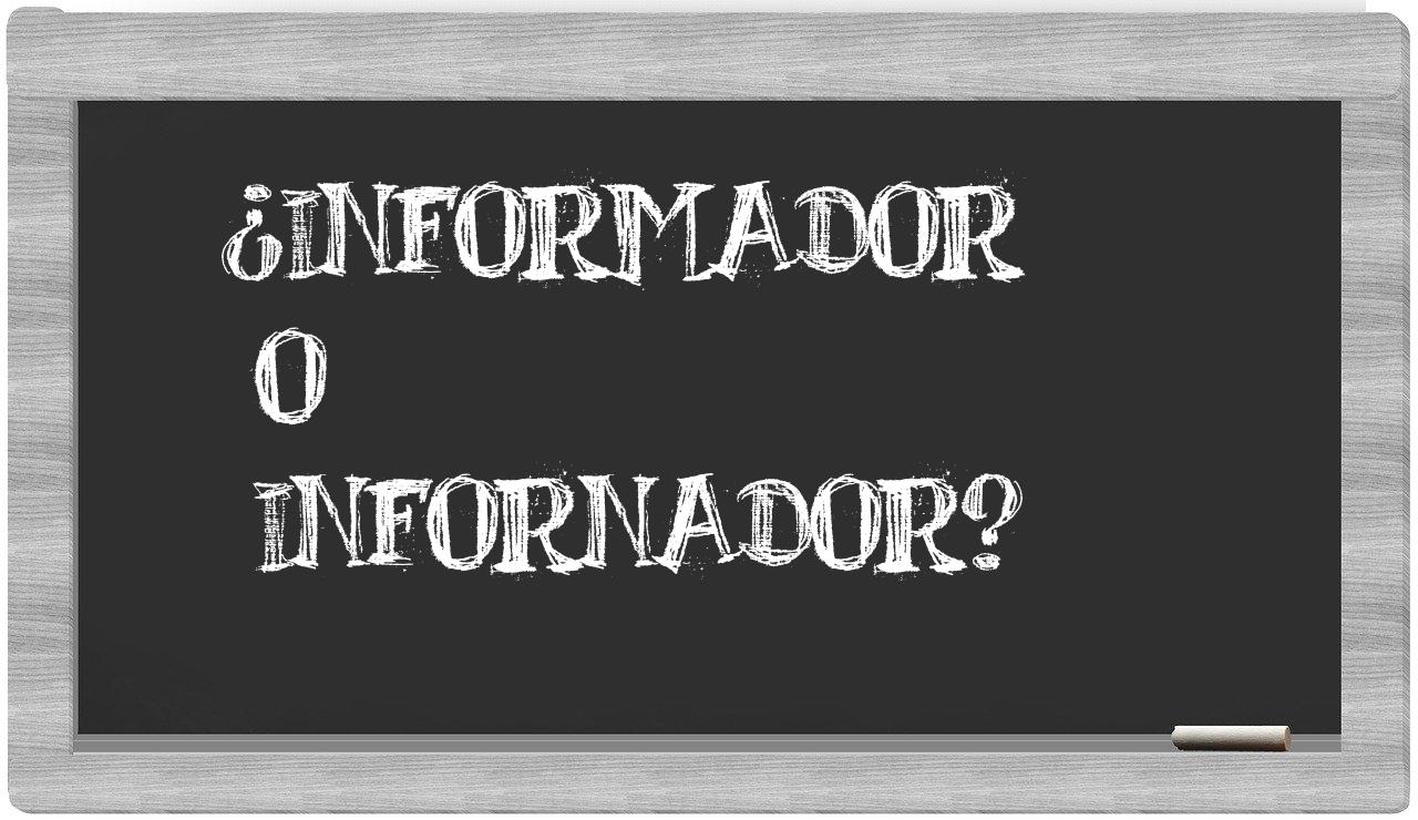 Cuando se trata de elegir entre informador y infornador, no hay lugar para la incertidumbre, puesto que únicamente informador se encuentra debidamente aceptada y registrada, mientras que infornador carece de reconocimiento en el Diccionario de la Real Academia Española.