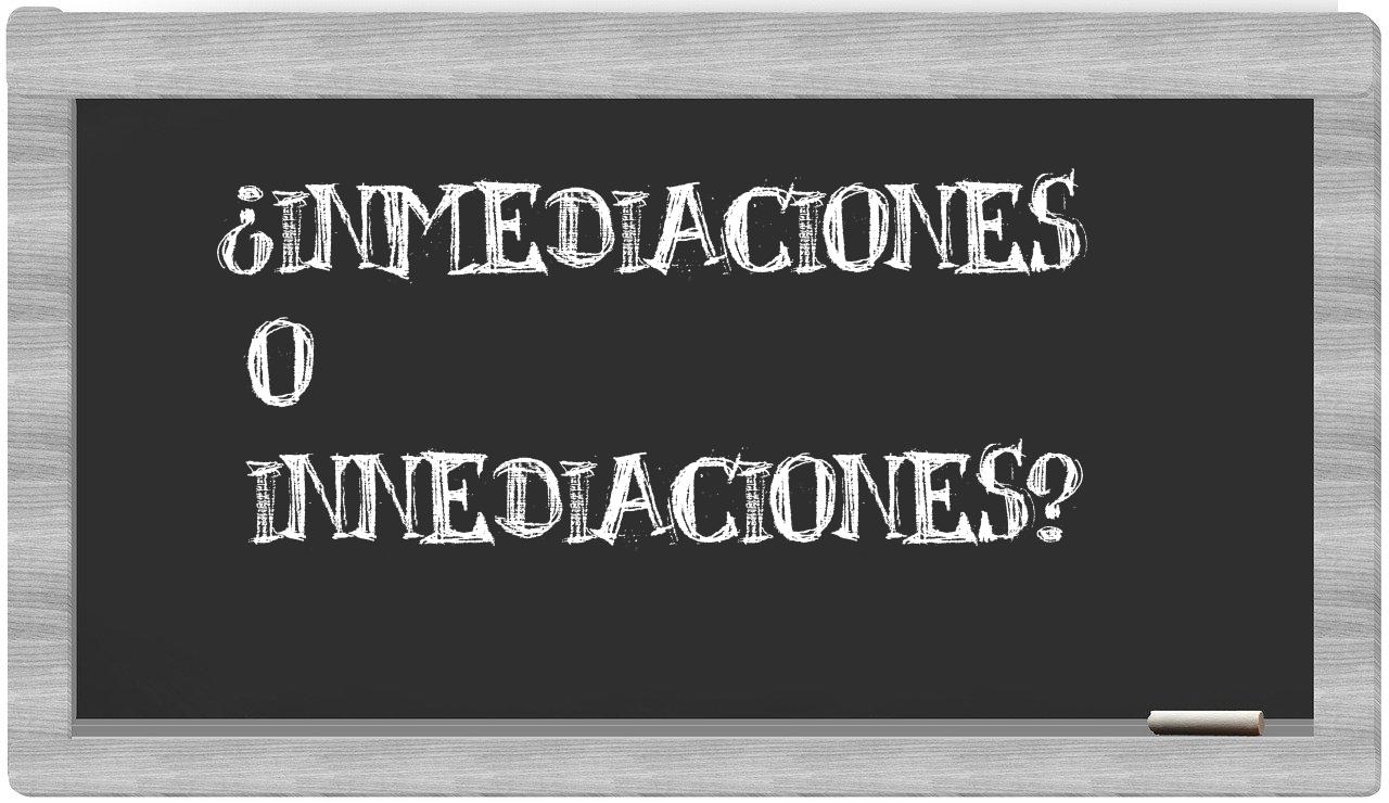 Cuando se presenta la disyuntiva entre inmediaciones y innediaciones, no hay lugar para la incertidumbre, pues únicamente inmediaciones se encuentra adecuadamente redactada; por su parte, innediaciones no figura en el prestigioso Diccionario de la Real Academia Española.