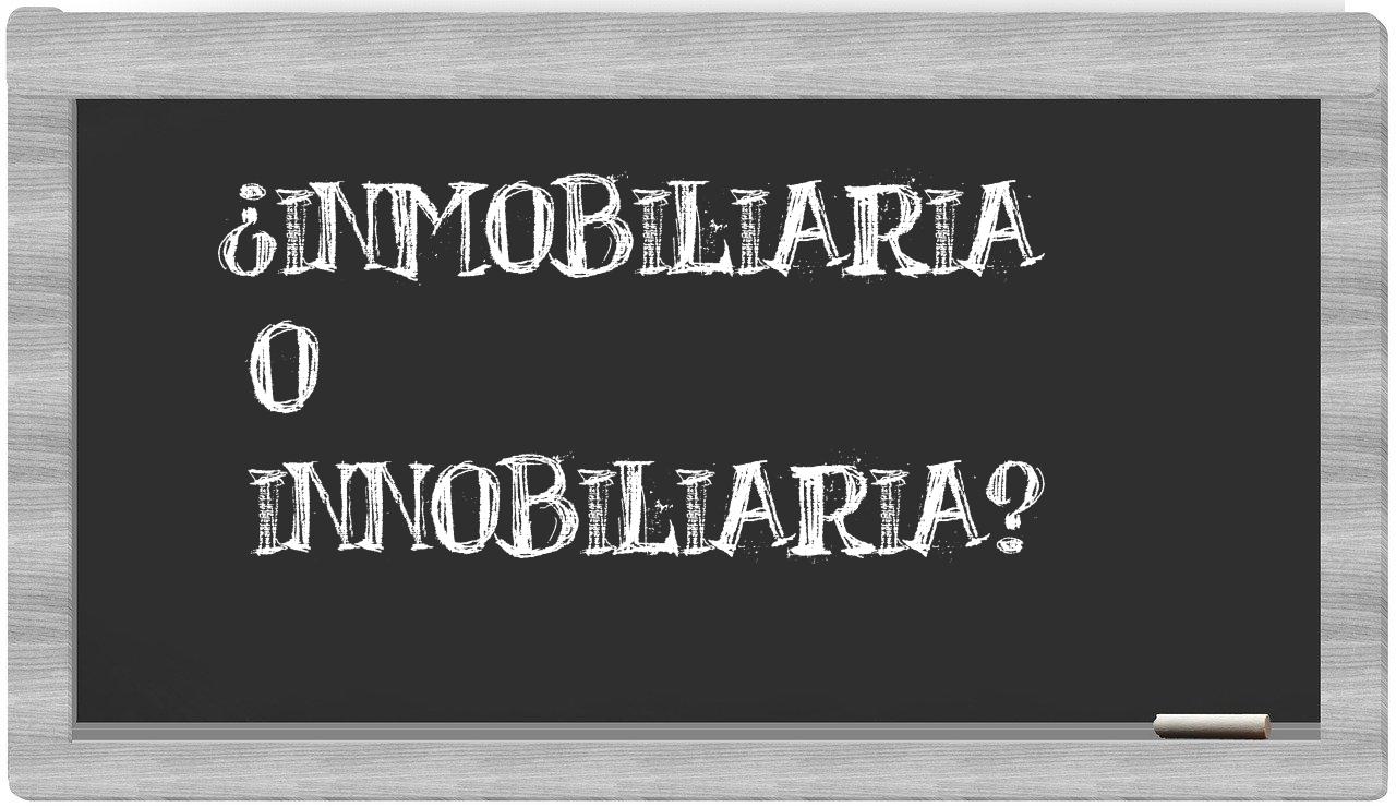 Cuando se presente la elección entre los términos inmobiliaria y innobiliaria, no hay motivo para titubear, puesto que únicamente inmobiliaria es la forma adecuada y aceptada; del contrario, innobiliaria carece de reconocimiento en el prestigioso Diccionario de la Real Academia Española.