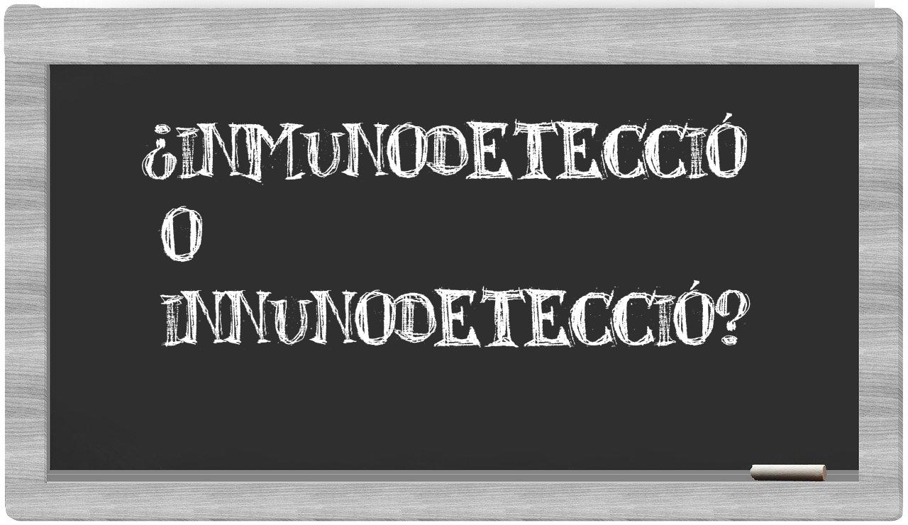 Cuando se presenta la elección entre inmunodetecció y innunodetecció, no hay lugar para la indecisión, puesto que únicamente inmunodetecció se encuentra correctamente formulada. Por otro lado, innunodetecció carece de reconocimiento en el Diccionario de la Real Academia Española.