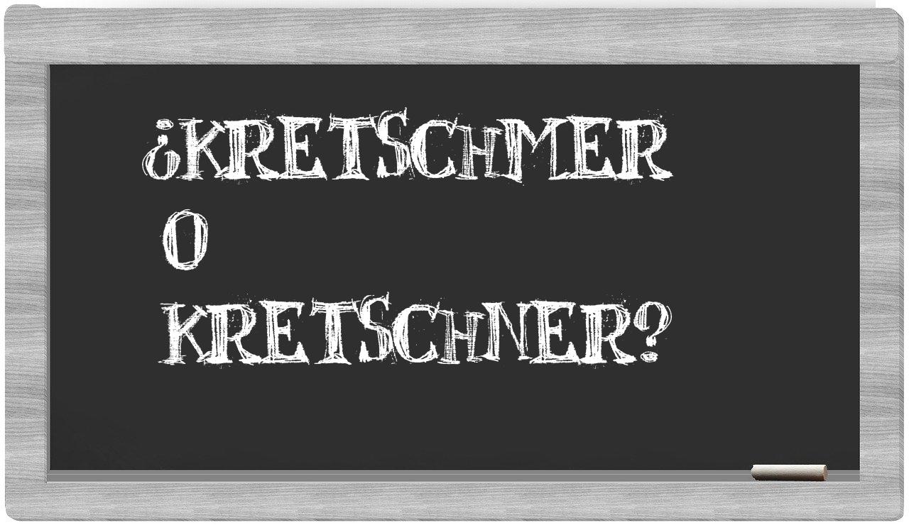 Cuando se presenta la selección entre los términos kretschmer y kretschner, la decisión debe ser clara e inmediata, puesto que únicamente kretschmer cuenta con la correcta forma escrita. Por otro lado, kretschner no se encuentra registrado en el Diccionario de la Real Academia de la Lengua.