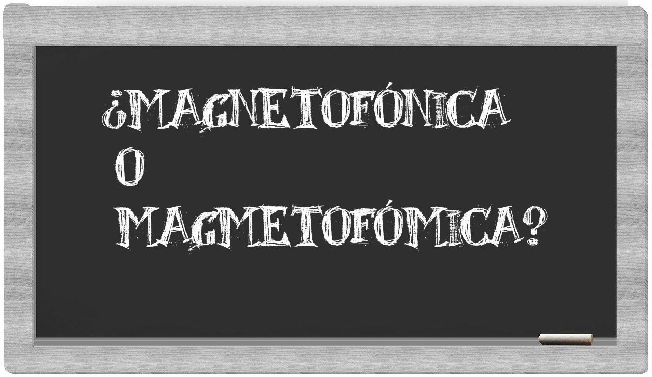 Con respecto a la confusión habitual entre magnetofónica y magmetofómica, es crucial que no vaciles, puesto que únicamente magnetofónica representa la forma adecuada de escritura. Por otro lado, magmetofómica carece de reconocimiento en el Diccionario de la Real Academia Española.