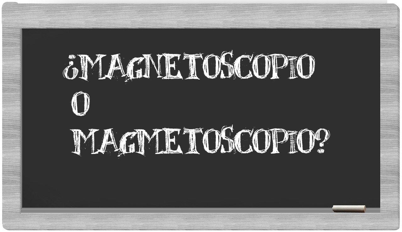 En la particular circunstancia que enfrenta magnetoscopio y magmetoscopio, no debes titubear; únicamente magnetoscopio es la que se encuentra adecuadamente registrada, mientras que magmetoscopio no forma parte del léxico aceptado por la Real Academia Española.