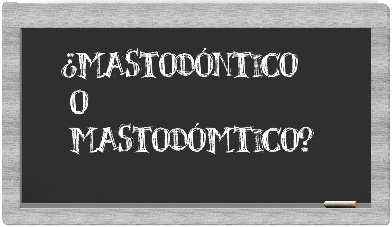 Cuando te encuentres en la encrucijada de elegir entre mastodóntico y mastodómtico, no vaciles ni un instante, puesto que solamente mastodóntico cuenta con la validación de la lengua, mientras que mastodómtico no tiene un lugar en el Diccionario de la Real Academia Española.