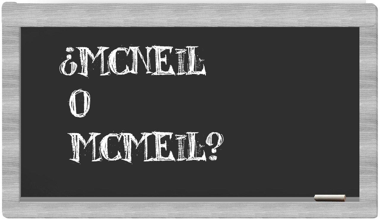 En la particularidad que surge en la comparación entre mcneil y mcmeil, no hay lugar para la incertidumbre, puesto que únicamente mcneil se encuentra correctamente redactado. Por otra parte, mcmeil no figura en el léxico del Diccionario de la Real Academia Española.