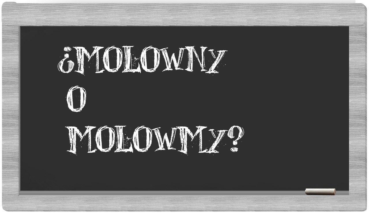 Cuando se trata de decidir entre molowny y molowmy, la elección es inconfundible, puesto que únicamente molowny es la forma adecuada. Es importante señalar que molowmy no figura en el Diccionario de la Real Academia Española.