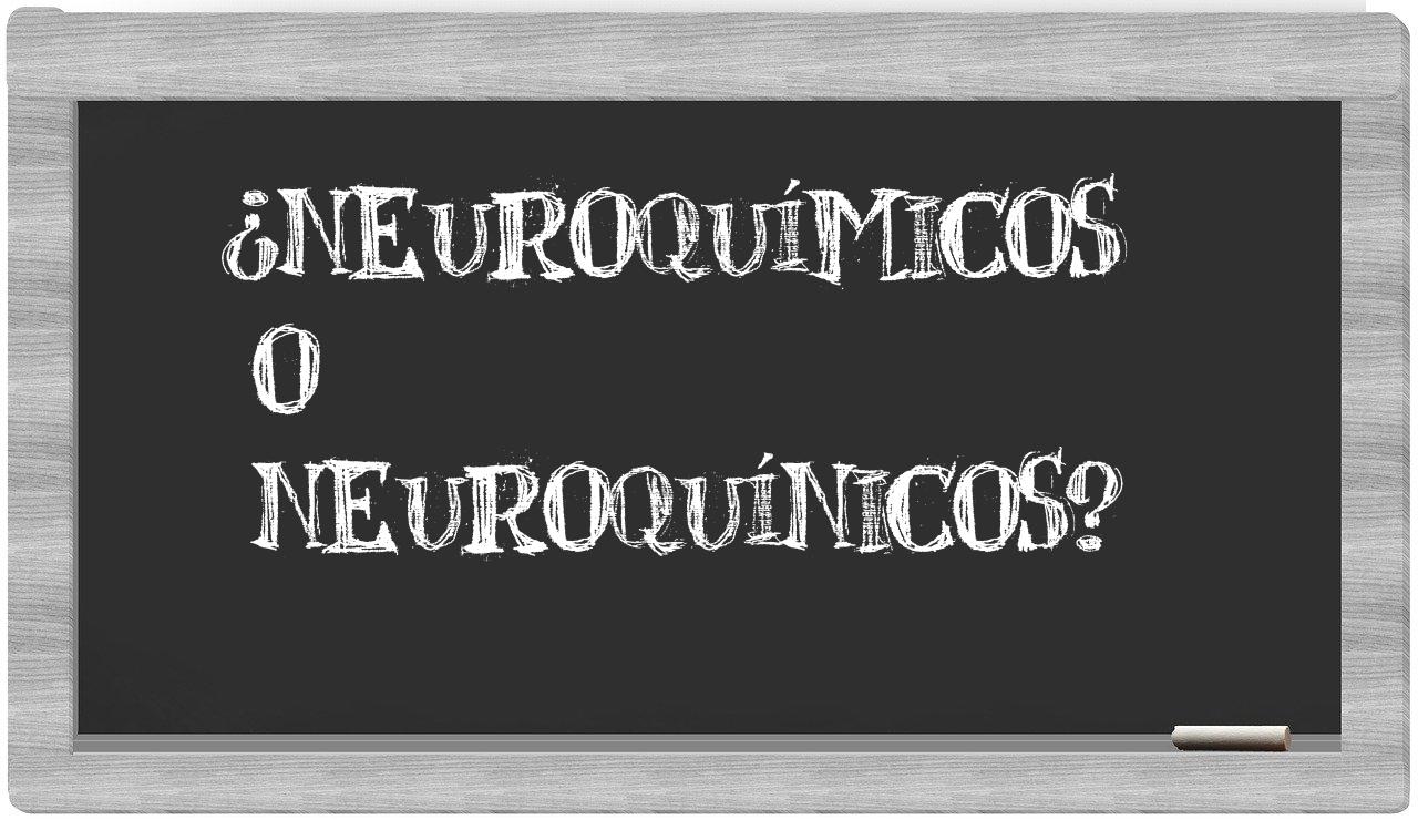 Cuando se enfrenta a la comparación entre neuroquímicos y neuroquínicos, no debería haber lugar para las dudas, puesto que únicamente neuroquímicos es la opción que figura correctamente; por su parte, neuroquínicos carece de reconocimiento en el Diccionario de la Real Academia de la Lengua.
