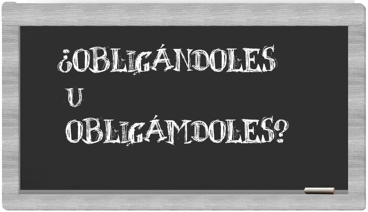 Cuando te encuentres considerando las expresiones obligándoles y obligámdoles, no hay lugar para la incertidumbre, puesto que únicamente obligándoles se encuentra correctamente formulada en el idioma, mientras que obligámdoles no figura en el Diccionario de la Real Academia Española.