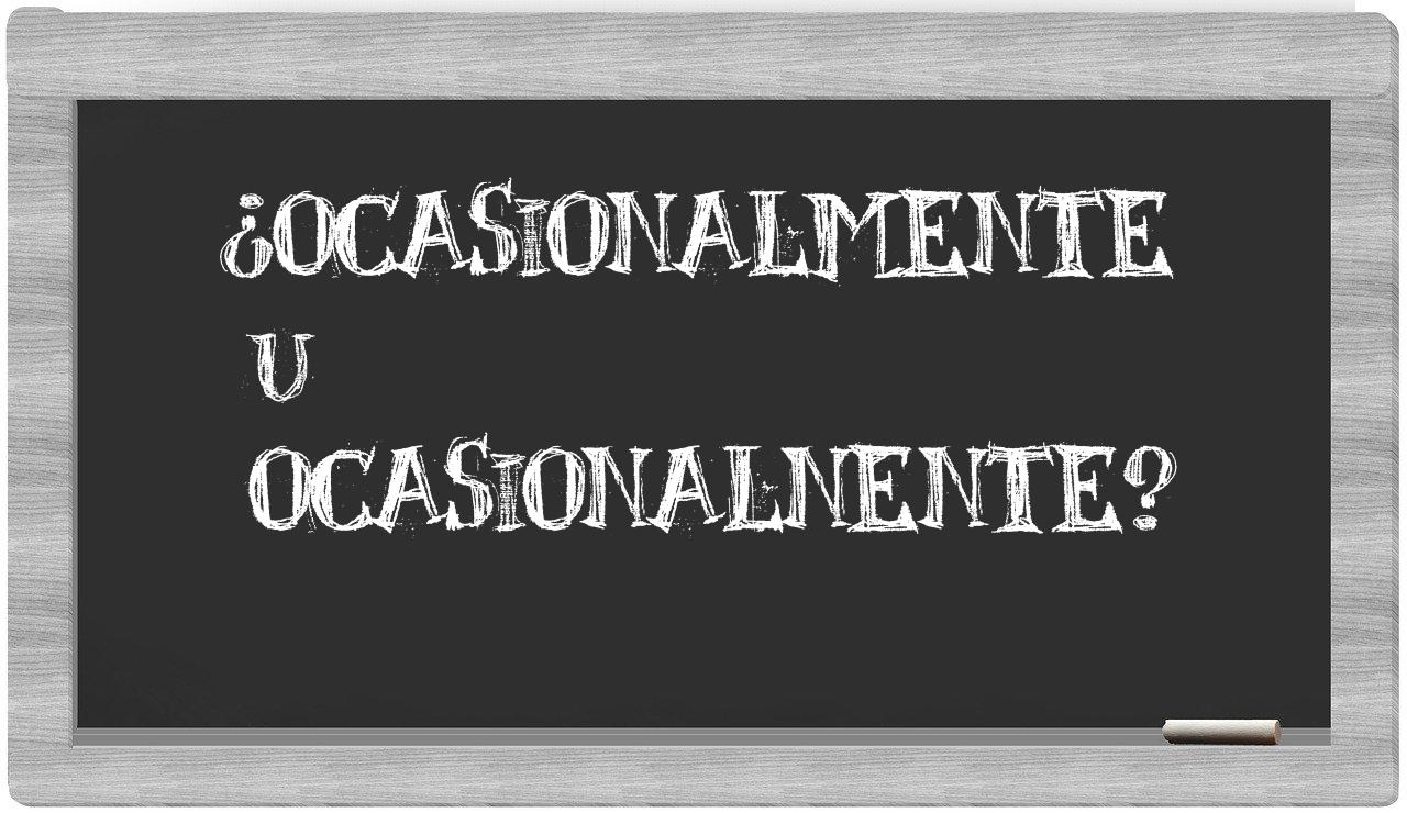 Cuando se presenta la elección entre ocasionalmente y ocasionalnente, no hay lugar para la indecisión, puesto que únicamente ocasionalmente se encuentra correctamente formulada. Por otro lado, ocasionalnente carece de reconocimiento en el Diccionario de la Real Academia Española.