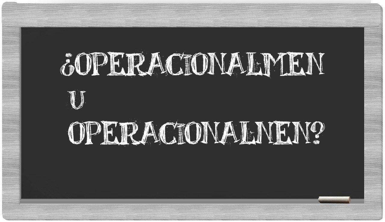 Cuando se trata de la comparación entre el término operacionalmen y la palabra operacionalnen, es fundamental que no vaciles, pues únicamente operacionalmen se halla correctamente redactada. Por otro lado, operacionalnen no figura en el Diccionario de la Real Academia de la Lengua.