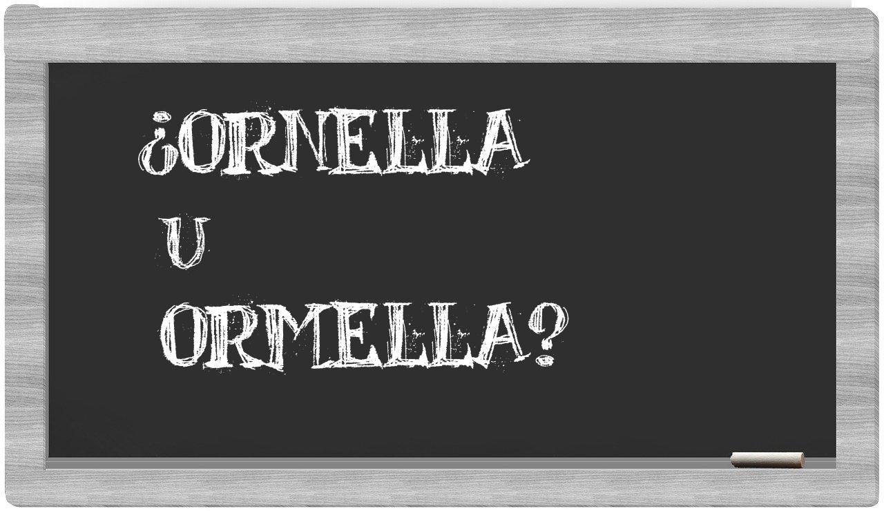 No deberías sentir la más mínima incertidumbre al seleccionar entre ornella y ormella, puesto que únicamente ornella es la que se encuentra correctamente plasmada; de hecho, ormella no figura en el venerado Diccionario de la Real Academia de la Lengua.