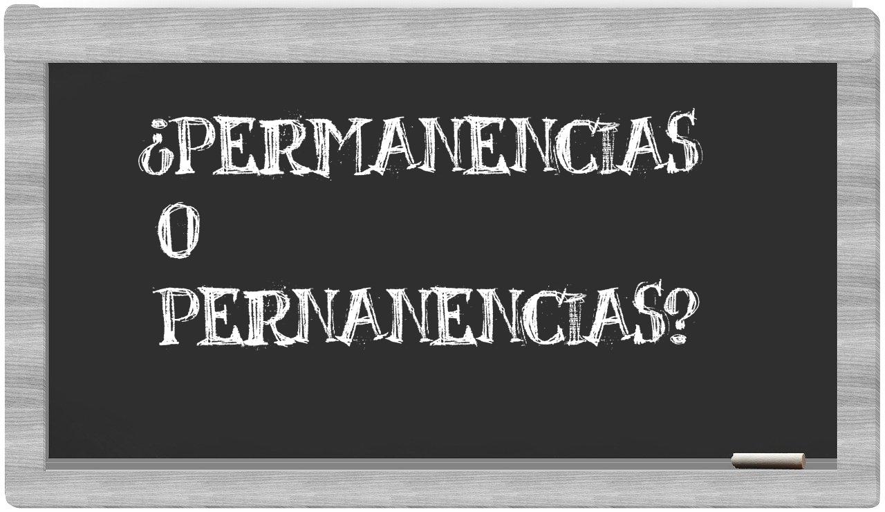 Cuando se trata del uso de permanencias en contraposición a pernanencias, no hay lugar para la indecisión, pues únicamente permanencias cuenta con la ortografía adecuada; de hecho, pernanencias no se encuentra registrado en el Diccionario de la Real Academia Española.