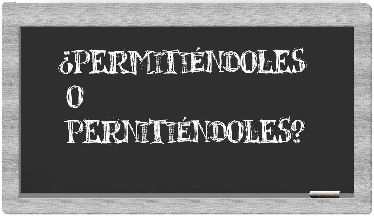 Cuando se presenta la disyuntiva entre el término permitiéndoles y su contraparte pernitiéndoles, es fundamental que no vaciles, puesto que únicamente permitiéndoles refleja la forma adecuada de escritura. Por su parte, pernitiéndoles carece de reconocimiento en el Diccionario de la Real Academia Española.