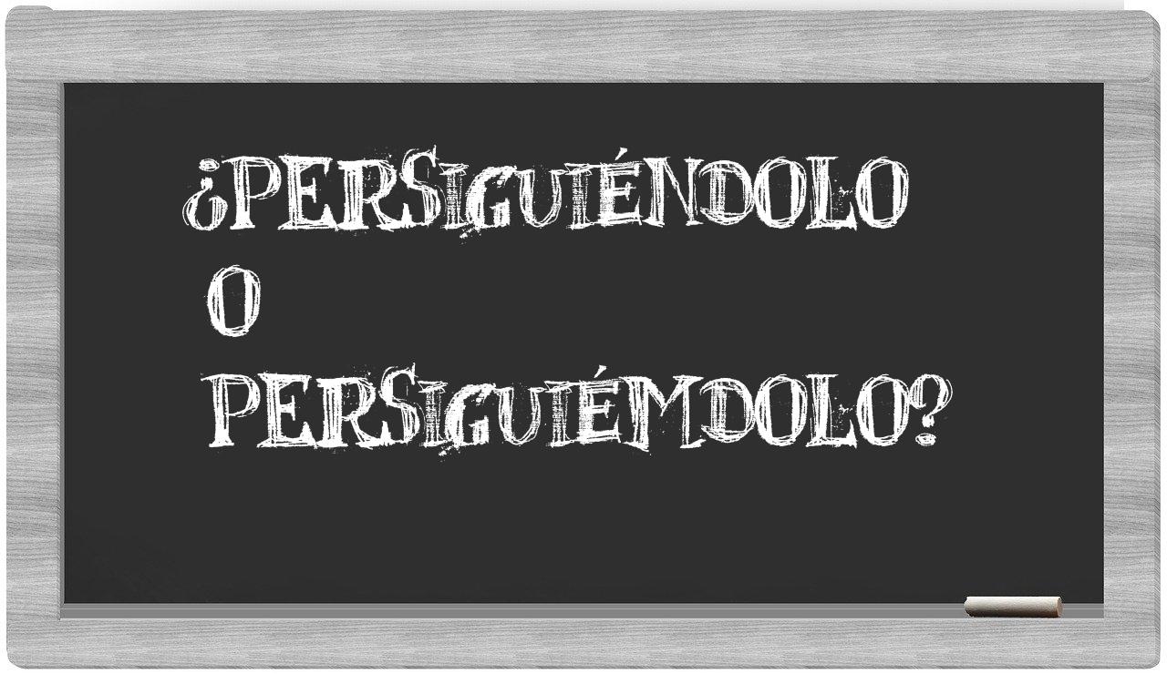 La mezcla entre persiguiéndolo y persiguiémdolo surge sobre todo por su parecido sonoro. En la gran parte de los acentos del español, ambas expresiones tienen una pronunciación tan afín que puede hacer creer que su escritura es idéntica. No obstante, la forma adecuada de cada término está definida por su raíz etimológica y por las normas particulares de la escritura en español.