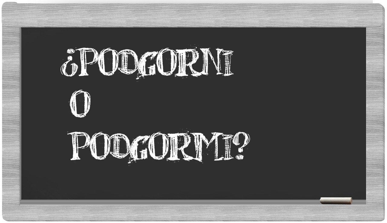 En la particular situación que se presenta entre los términos podgorni y podgormi, la elección es clara y sin lugar a vacilaciones, puesto que únicamente podgorni se encuentra correctamente redactada; en cambio, podgormi no figura en el esteemed Diccionario de la Real Academia Española.