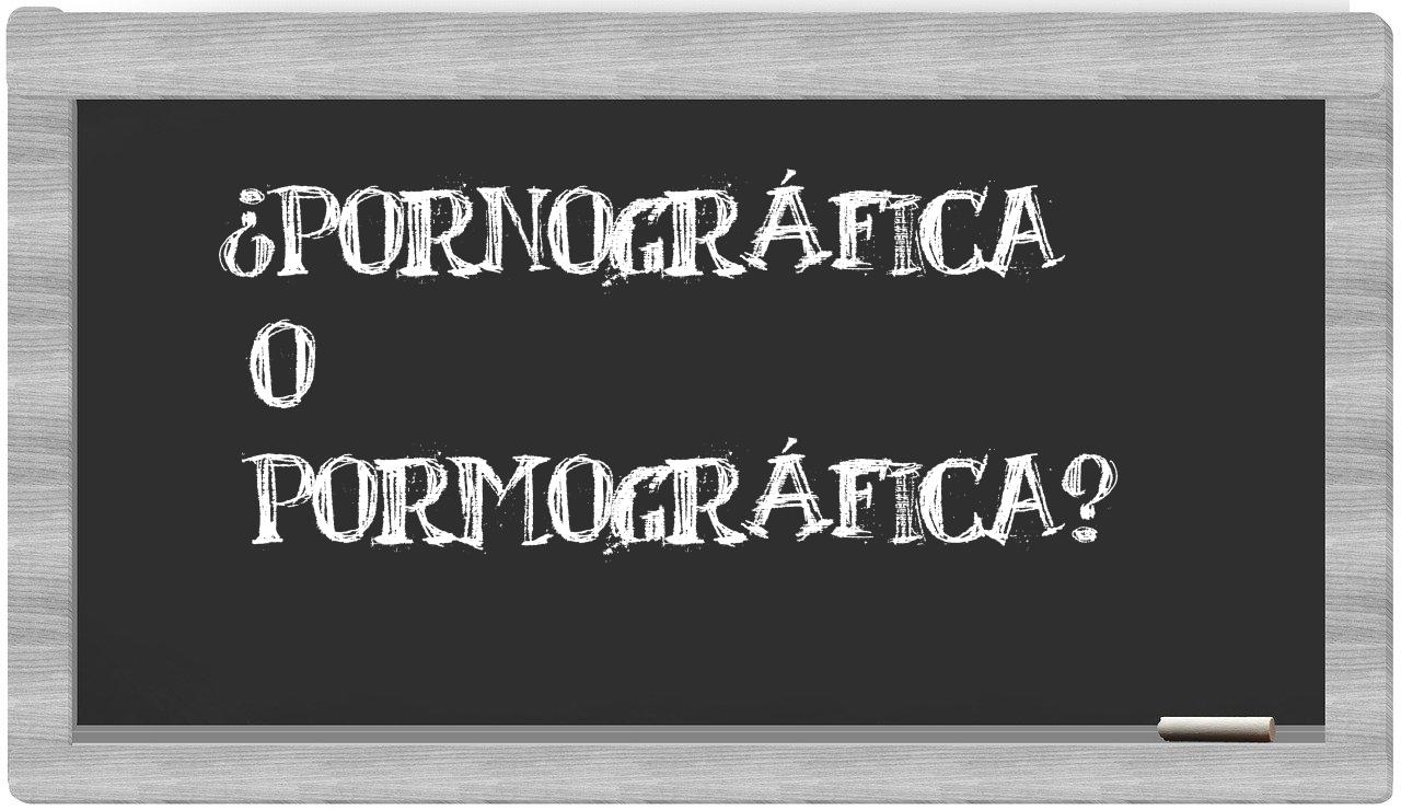 En la situación particular que enfrenta la combinación de pornográfica y pormográfica, no deberías titubear, puesto que únicamente pornográfica se encuentra registrada correctamente, mientras que pormográfica carece de reconocimiento en el Diccionario de la Real Academia Española.