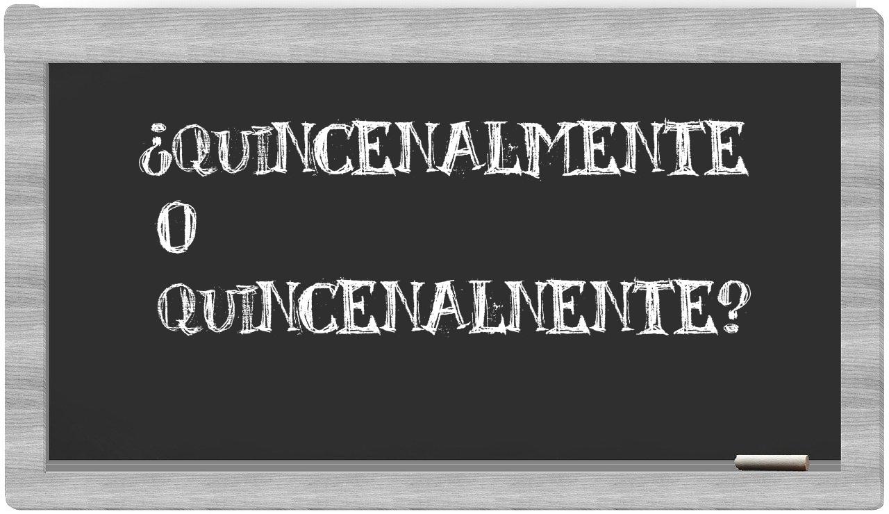 No deberías tener ninguna incertidumbre cuando se trata de discernir entre quincenalmente y quincenalnente, puesto que únicamente quincenalmente se encuentra debidamente registrada en el Diccionario de la Real Academia Española, mientras que quincenalnente carece de tal reconocimiento.