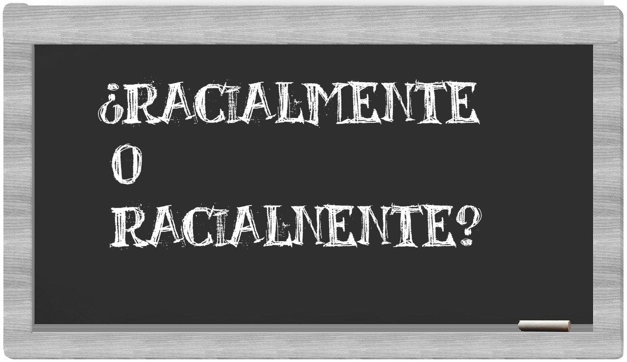 En la particular situación que involucra a las palabras racialmente y racialnente, deberías tener claridad absoluta, puesto que solo racialmente se encuentra correctamente redactada. Por otro lado, racialnente no figura en el Diccionario de la Real Academia Española.