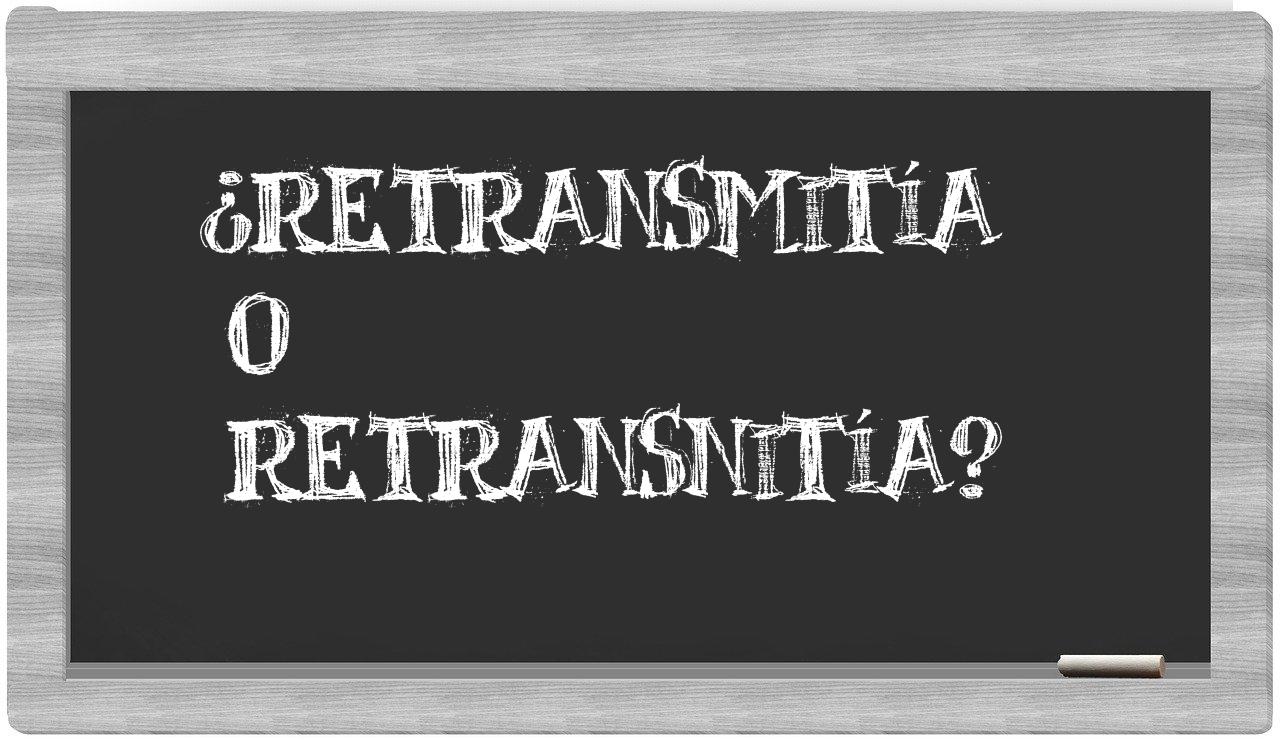 En la situación particular que involucra los términos retransmitía y retransnitía, no deberías titubear, puesto que únicamente retransmitía se encuentra correctamente redactado. En contraste, retransnitía no se halla registrado en el Diccionario de la Real Academia Española.