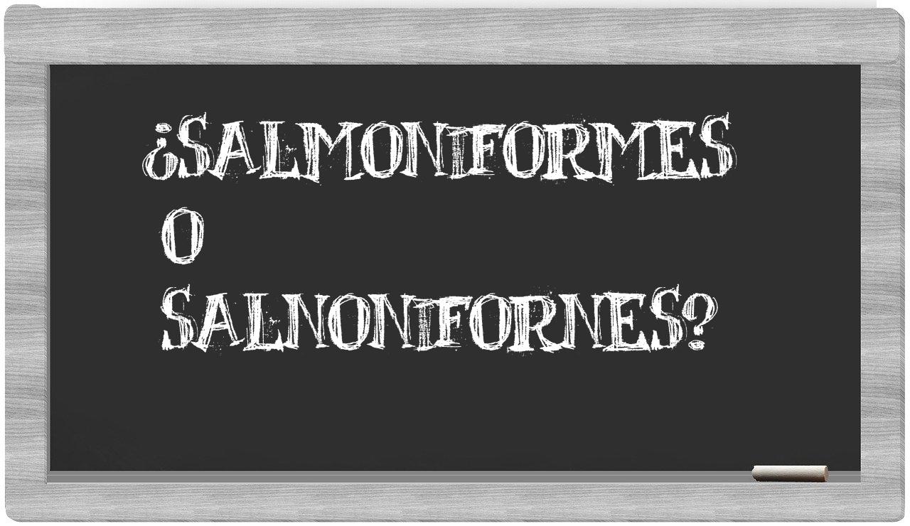 La mezcla entre salmoniformes y salnonifornes surge fundamentalmente de su semejanza fonética. En casi todos los acentos del español, las dos palabras se pronuncian de forma casi idéntica, lo que puede inducir a la creencia de que se escriben de manera análoga. Sin embargo, la forma escrita adecuada de cada término está determinada por su raíz etimológica y las normas particulares de la escritura en español.