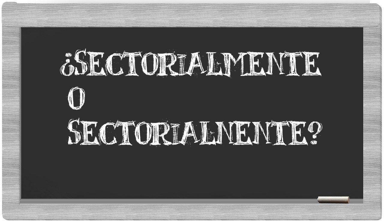 Cando se presenta la situación entre los términos sectorialmente y sectorialnente, no hay espacio para la indecisión, puesto que únicamente sectorialmente se encuentra debidamente codificada en nuestro idioma, mientras que sectorialnente carece de reconocimiento en el Diccionario de la Real Academia Española.
