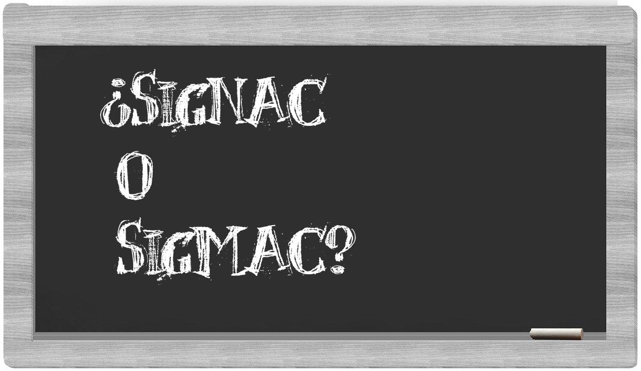 A la hora de discernir entre signac y sigmac, no caben dudas en tu mente, puesto que únicamente signac se presenta como la opción correcta. Por otro lado, sigmac carece de reconocimiento en el Diccionario de la Real Academia Española.