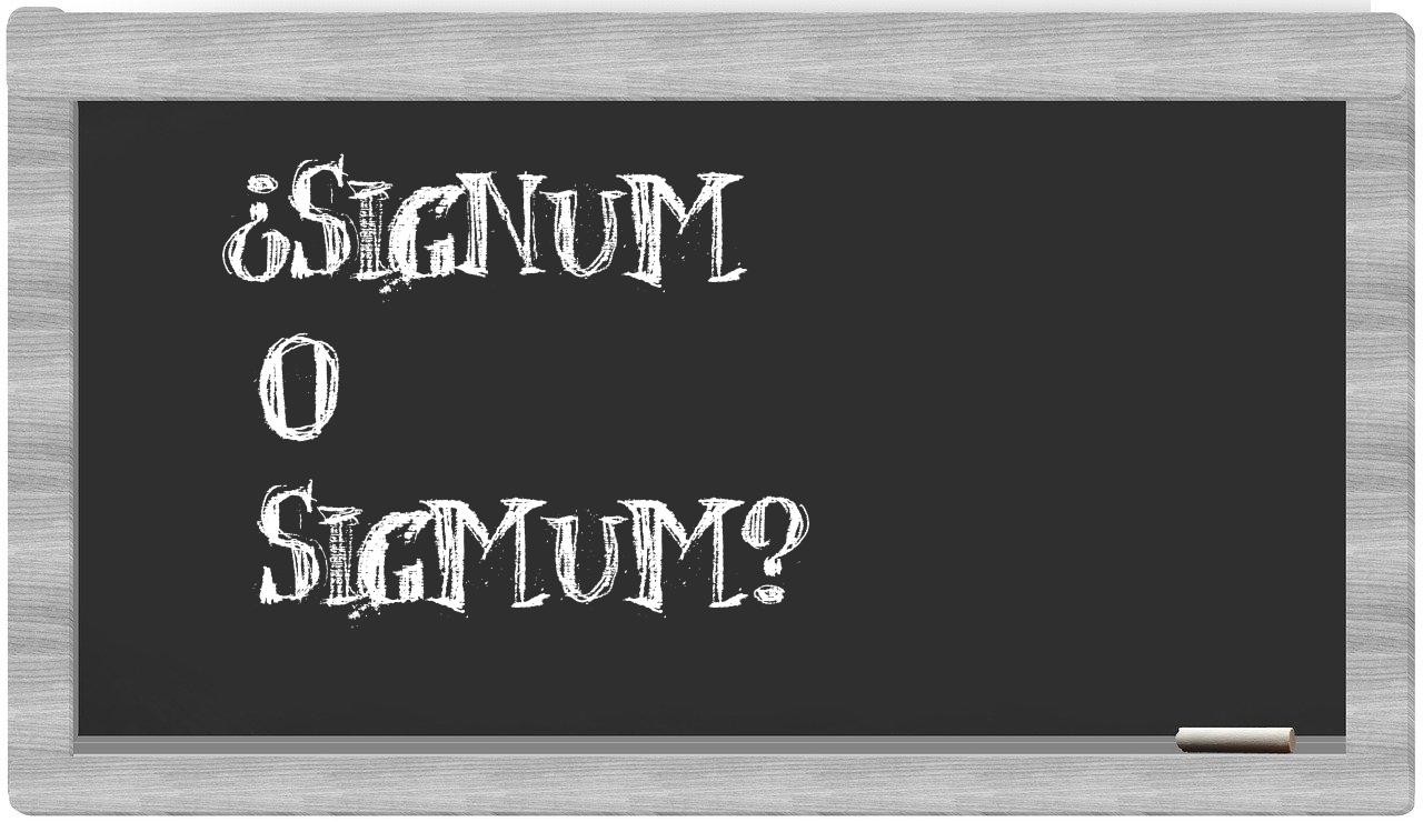 En la situación específica que enfrentan los términos signum y sigmum, no deberías titubear ni por un instante, porque solo signum se encuentra correctamente redactada, mientras que sigmum no figura en el vocabulario de la Real Academia Española.
