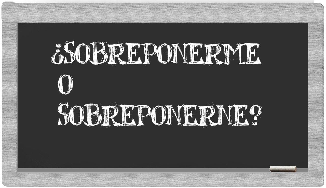 En la situación particular que involucra los términos sobreponerme y sobreponerne, no deberías titubear, puesto que únicamente sobreponerme se encuentra correctamente redactado. En contraste, sobreponerne no se halla registrado en el Diccionario de la Real Academia Española.