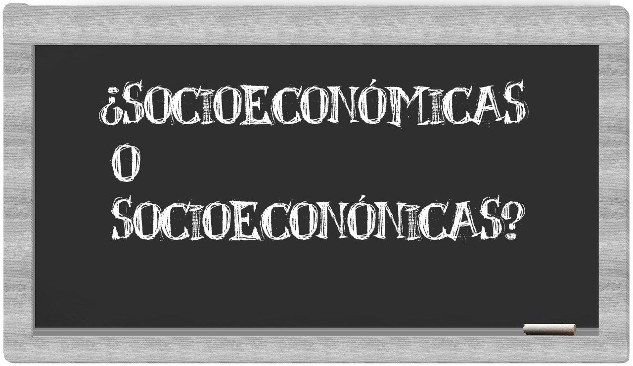Cuando se trata de la distinción entre socioeconómicas y socioeconónicas, no hay lugar para la incertidumbre, pues únicamente socioeconómicas es la forma adecuada, mientras que socioeconónicas no figura en el Diccionario de la Real Academia de la Lengua.
