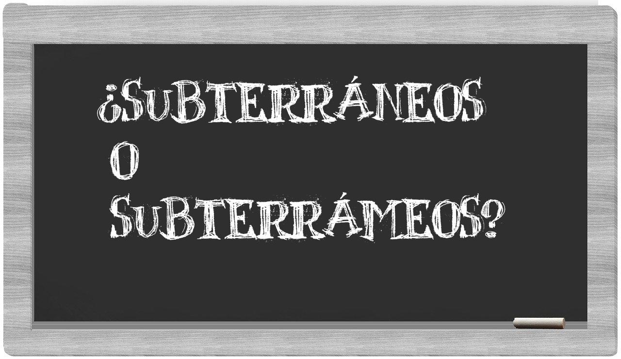 Cuando se trata de la elección entre subterráneos y subterrámeos, es fundamental que no tengas ninguna incertidumbre, puesto que únicamente subterráneos es la forma adecuada. Por otro lado, subterrámeos no se encuentra recogida en el Diccionario de la Real Academia Española.