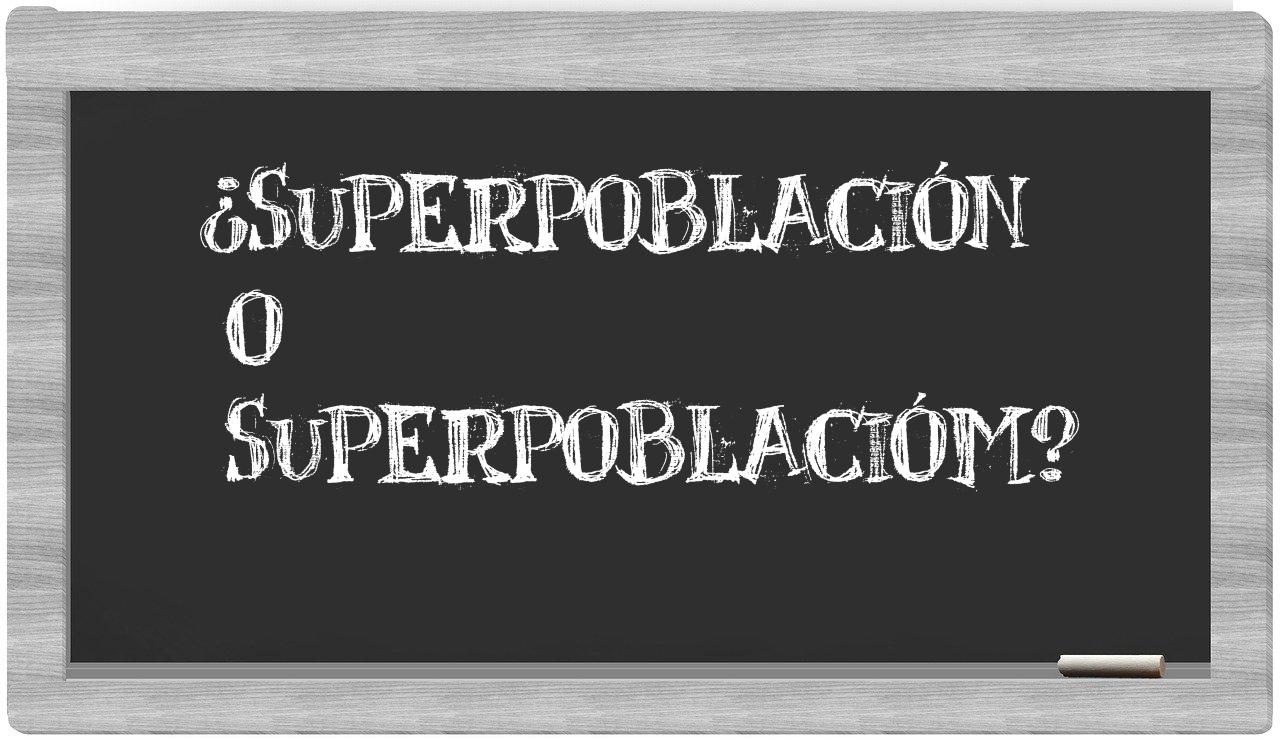 En lo que concierne a la distinción entre superpoblación y superpoblacióm, no deberías tener titubeos, puesto que únicamente superpoblación es la que se encuentra correctamente registrada. Por su parte, superpoblacióm no figura en el Diccionario de la Real Academia Española.