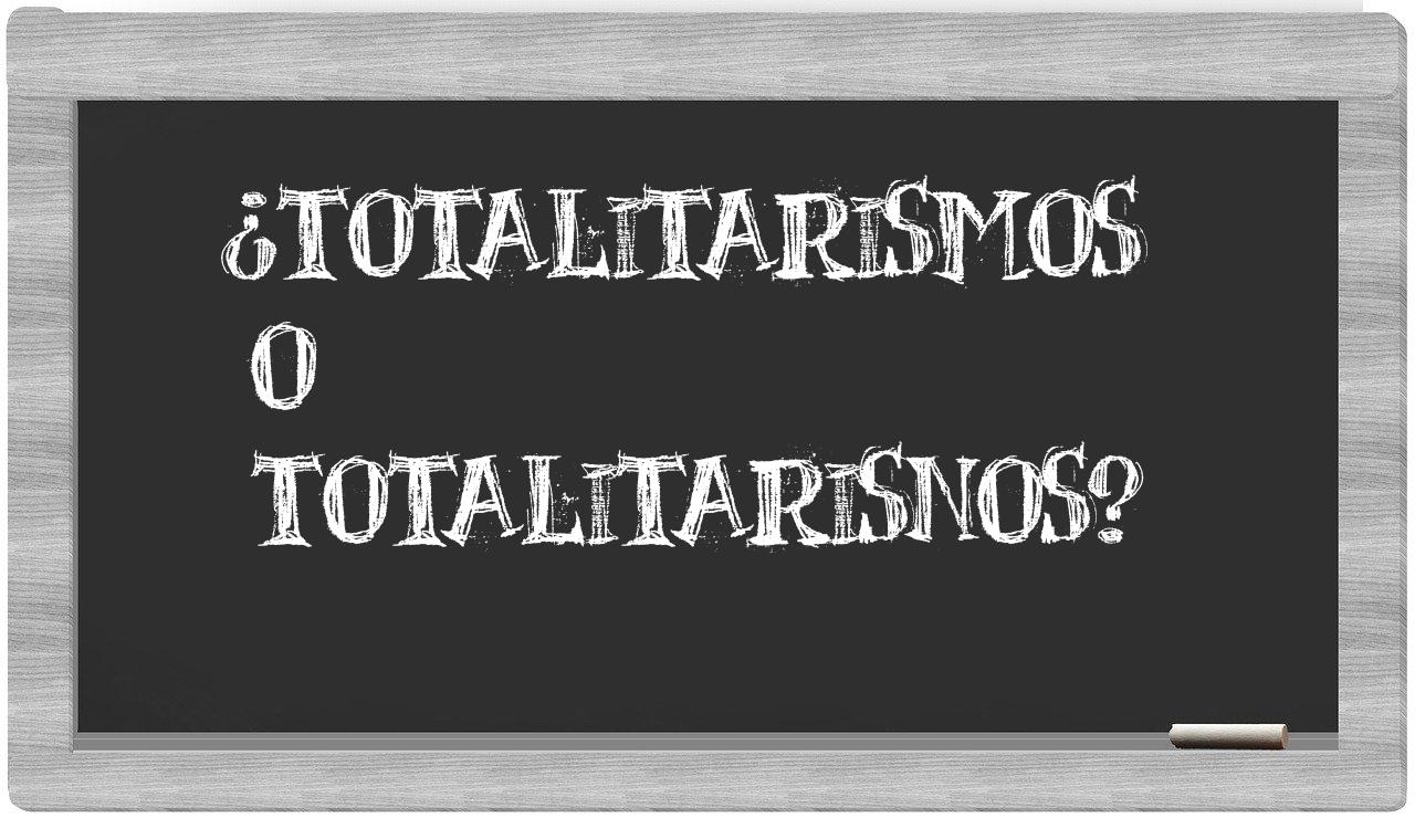 Cuando se trata de la distinción entre totalitarismos y totalitarisnos, no hay lugar para la vacilación, pues únicamente totalitarismos es la forma válida, dado que totalitarisnos no figura en el Diccionario de la Real Academia Española.