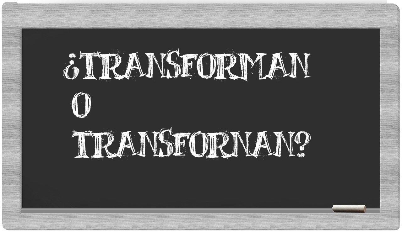 Cuando te enfrentes a la elección entre transforman y transfornan, no permitas que la incertidumbre te abrume, pues únicamente transforman es la forma adecuada. Recuerda que transfornan no se encuentra en el prestigioso Diccionario de la Real Academia Española.