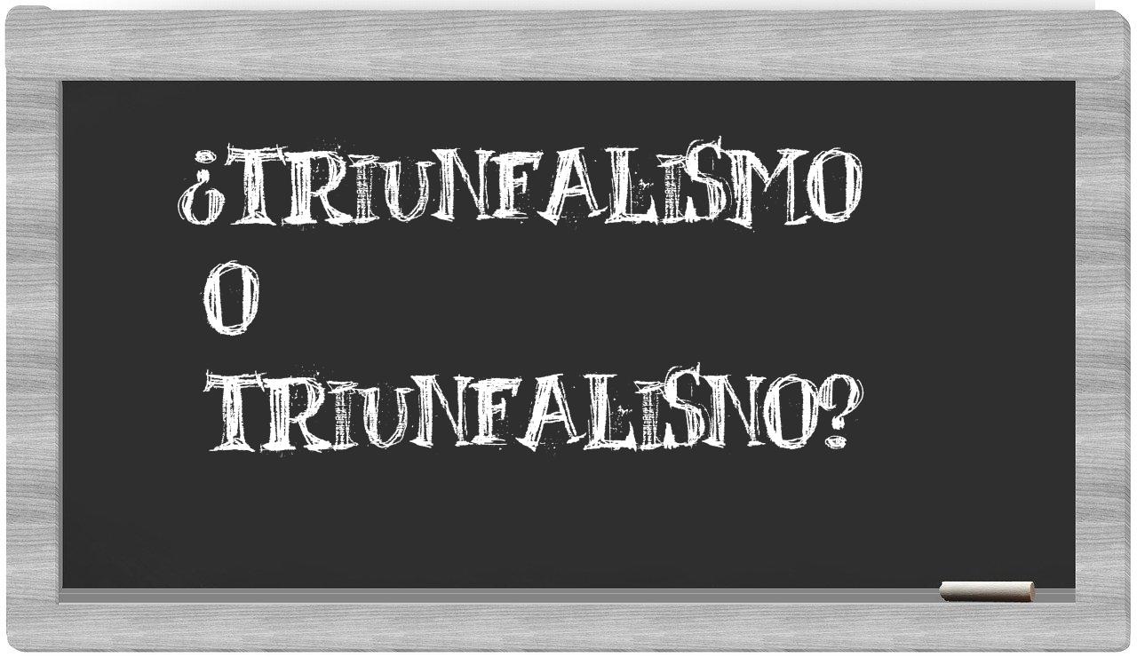 Cuando se trata de las expresiones triunfalismo y triunfalisno, no hay espacio para la incertidumbre, porque es indiscutible que solo triunfalismo es la opción adecuada, mientras que triunfalisno no se encuentra registrada en el Diccionario de la Real Academia de la Lengua.