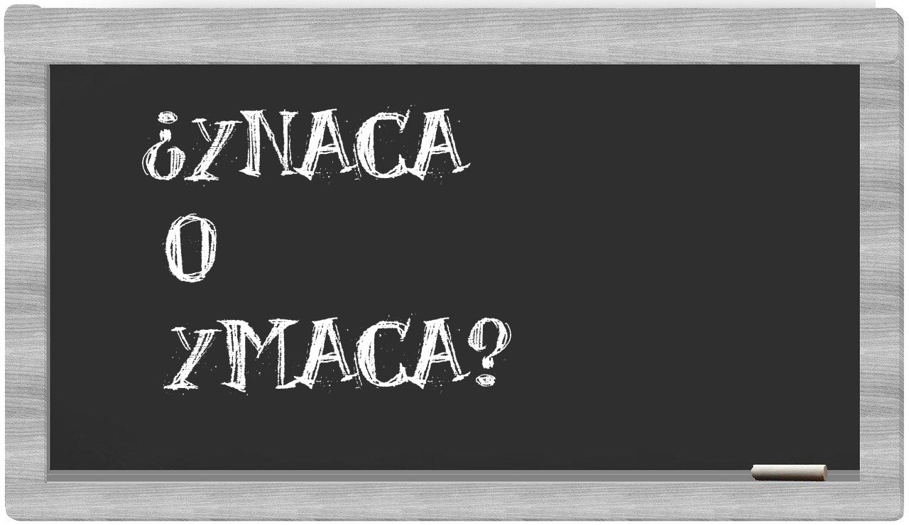 Cuando te encuentres en la situación de elegir entre ynaca y ymaca, no vaciles ni un instante, ya que solo ynaca es la opción correcta; lamentablemente, ymaca no figura en el Diccionario de la Real Academia Española.